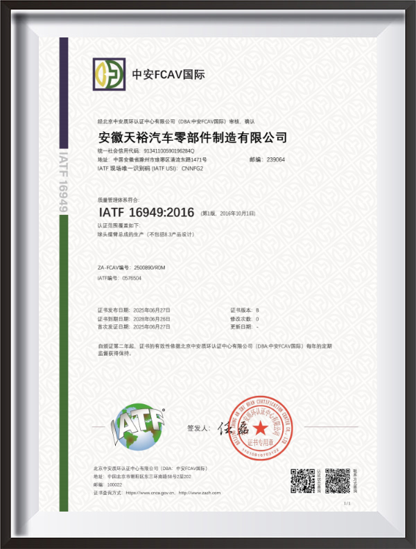 | 回答: 当社は1998年に設立された自動車用ボールヘッドとコントロールアームの生産を専門とする工場です。 |